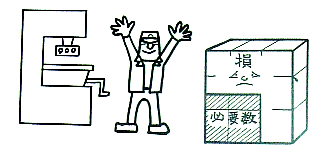 また、倉庫から工場へ、工場から機械側へ、そして、機械側から作業者の手元へ積替えや移動が何度も繰り返されているが、これらも運搬のムダと言ってよいだろう。 3−2−4 加工そのもののムダ たとえば、治具のガイドピンが不備なため、治具を左手でささえて作業をしており、そのために品物の加工がスムーズにいかなくて、ムダな時間を費やしている。これが加工そのもののムダである。このような場合の改善としては、治具を一刻も早く修理することが重要である。 3−3 ムダ発見が高能率の第一歩 トヨタ式生産システムの中心になる考え方では、ムダの排除であるということはすでに述べたが、そのムダとは、大ざっばに分けると前項の4つに分かれる。この4つをそれぞれ考えてみると、わかりやすいムダと、わかりにくいムダとがある。 日頃から、これはムダであると思いながら部下にやらせている管理・監督者は少ない。ほとんどは必要なことと思っていたり、わからなかったりする場合が多い。 いくらムダを排除してやろうと思っても、何がムダかわからないようになっていたのでは、ムダ排除も進めようがない。したがって、大切なことはムダがだれの目にもムダであると、はっきりわかるようにすることである。 これが能率向上の第1歩である。前項の4種の中で一番わかりやすいのは手待ちである。 たとえば、3分のタクトの中で毎回1分の手待ちが生ずれば、そこの監督者だけでなく、作業をしている本人も上級管理者も皆余裕があることがわかる。 ところが、この1分を仕事のように動きまわられるとちょっとわかりにくくなる。(運搬のムダ、加工のムダ) さらに、この1分で次の品物を加工されると、ムダかどうかはまったくだれにもわからなくなる。(造りすぎのムダ) だから、4種のムダはすべて手待ちに置き換える必要がある。こうすれば対策は比較的容易になるからである。 このために、(イ)標準作業をしっかり守らせ、それ以外のことをやらせない。 (ロ)かんばんによる生産方式で進みすぎを規制する。(ハ)コンベアラインに作業域を明示し、早目に手がけることをやめさせるといったやり方が考えられている。、 これらの細かい説明は他章に譲るとして、ここで大切なことは、ムダの排除のためには、ムダ発見が第一であることを十分認識することである。そうして、ムダが見つけやすいように、常に現場を整備することである。その一つ一つは細かいことであるかもしれない。たとえば、ときによっては、たった一つの工程間在庫も問題にされる場合もあるだろう。しかし、これらがすべて能率向上→原価低減につながっている以上、たった一つのものでも、なぜできてしまったのだろうと、疑問をもつことが大切である。ときにはこれが改善の手がかりとなることも、十分考えられるからである。 以上本節では、能率向上とは、ムダの排除によっておこなうことを述べた。ムダの見分け方については、まだ他の方法もあると思われるが、要はいくつかあるムダも、すべて発見しやすい手待ちのムダに置きかえるよう努力することである。これが能率向上の第一歩であることを繰り返し強調したい。 |